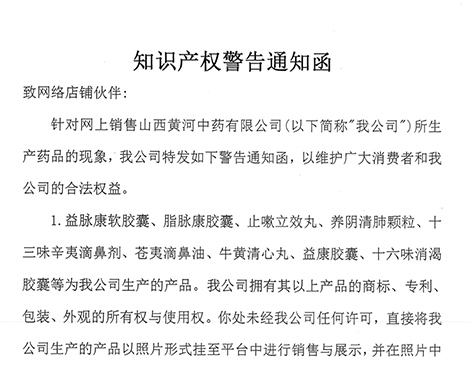 山西黃河中藥有限公司《知識產(chǎn)權(quán)警告通